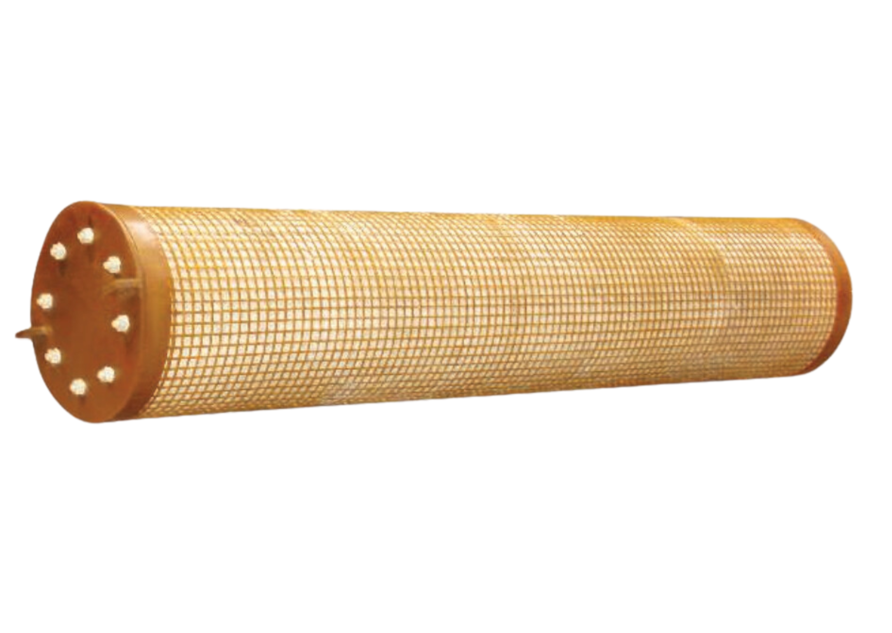 Fiber Bed filters are utilized in several aspects of the Chlorine manufacturing process. Typically chlorine is manufactured in electrolytic cells which decompose brine. From the cells Chlorine (CI) gas and Hydrogen (H,) gas are released. The Chlorine gas stream goes through a separation stage to remove entrained brine and salt particles. The final step of the separation is the wet Chlorine fiber bed filters. Their purpose is to prevent the drying tower from plugging with NaCl and to remove water from the gas stream in order to reduce Sulfuric Acid consumption in the drying tower. For this service fiber bed filters are used with high-efficiency glass fiber and cages fabricated from FRP or Titanium.