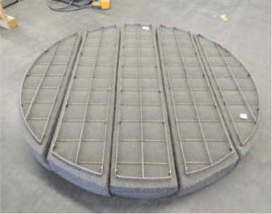 Meshpad demister is fabricated by knitting a fine metal wire into a mist-eliminating device. Meshpad mist eliminator will coalescer smaller liquid droplets into larger sizes that would then fall out by gravity, resulting in dryer gas.