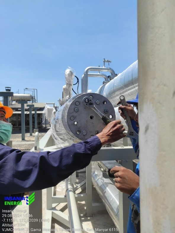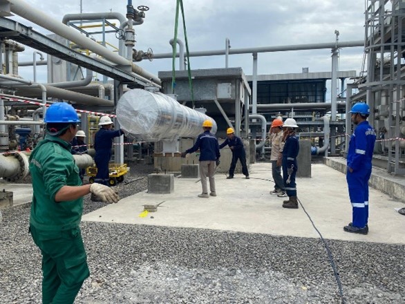 CONTRACTOR indicates and suspected failure or damage in the Sheel-side. The hypothetical root cause due to the HE type BFU, as well as high-pressure gas in the shell, was the event in which high-pressure drop across these long baffles, causing bending and loss-of-sealing between shell-pass, hence the cold-gas inlet (bottom) not fully routing to right-side of the shell first then to the left-upper shell, but instead going directly upward from bottom to leakage-baffle to outlet nozzle without sufficient heat-transfer because the regeneration gas flow to E-408 shall be 8 mmscfd instead of 6.11 mmscfd. CONTRACTOR chooses the design of new heater E-408B/C.